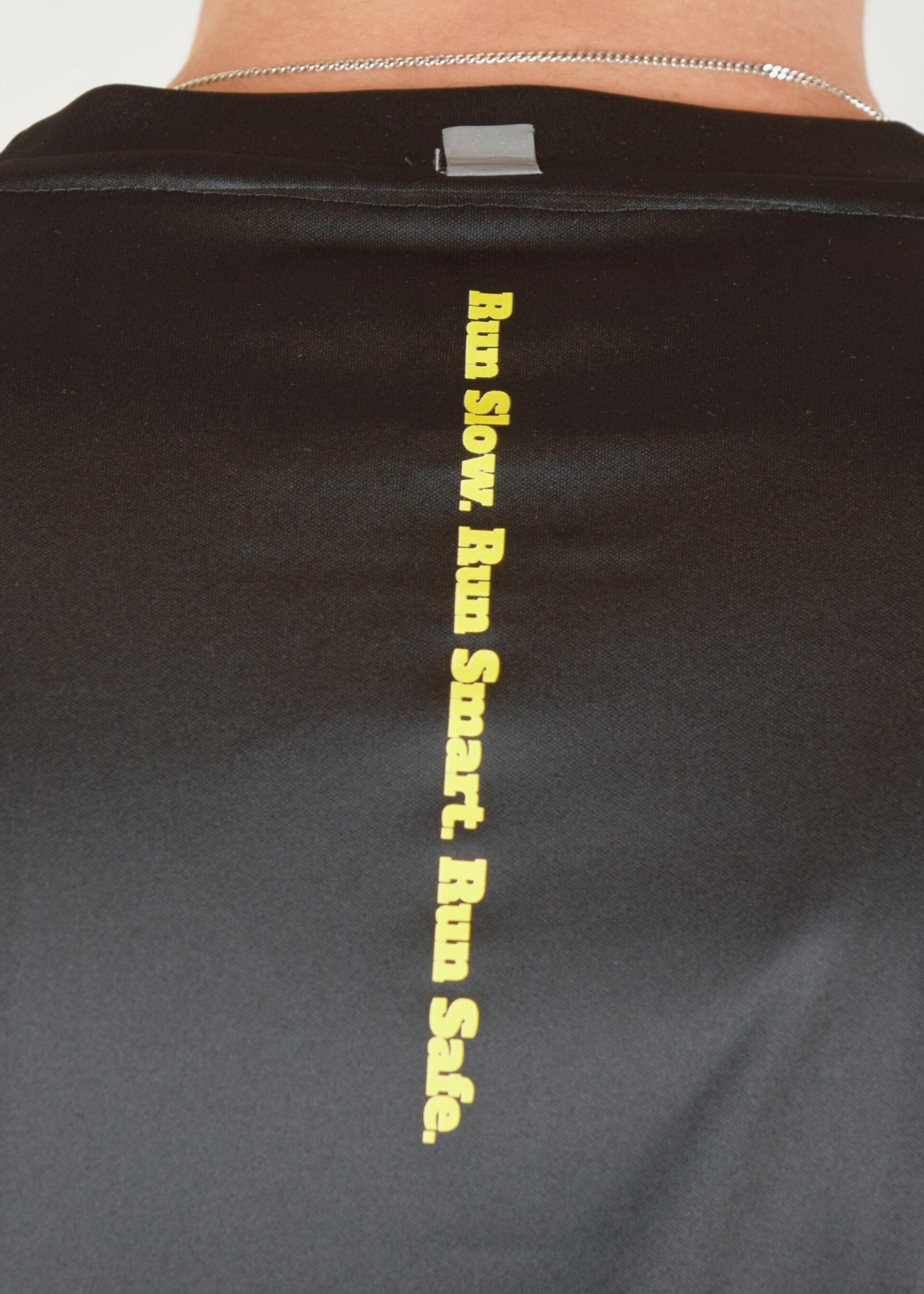 - Z2 adjusted mantra “run slow. run smart. run safe.” print down the back